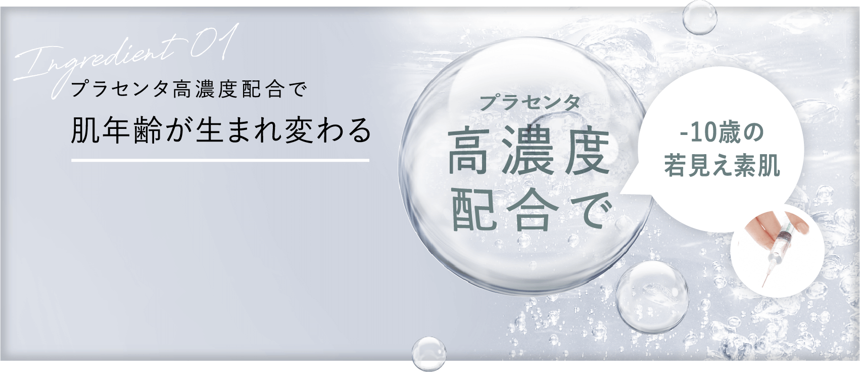 美白や肌代謝のサポート効果が期待できるプラセンタの中でも高品質な馬プラセンタを使用。ツヤ肌と透明感を生み出します。